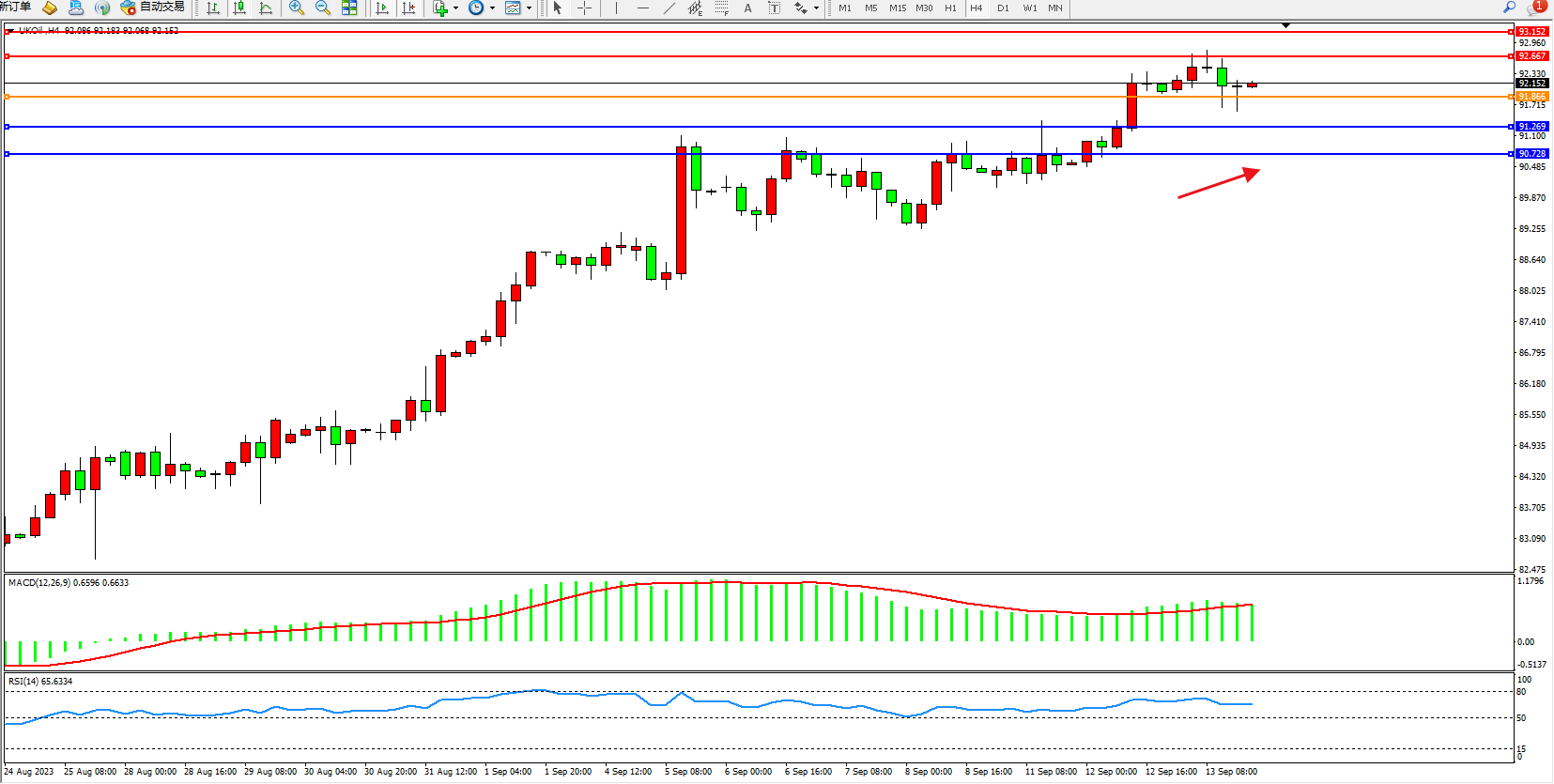 布油UKOil——4小时K线图显示: