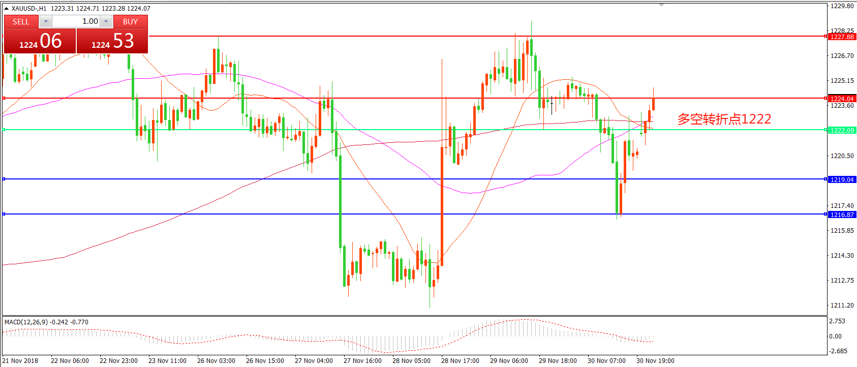 多空转折点:1222.00