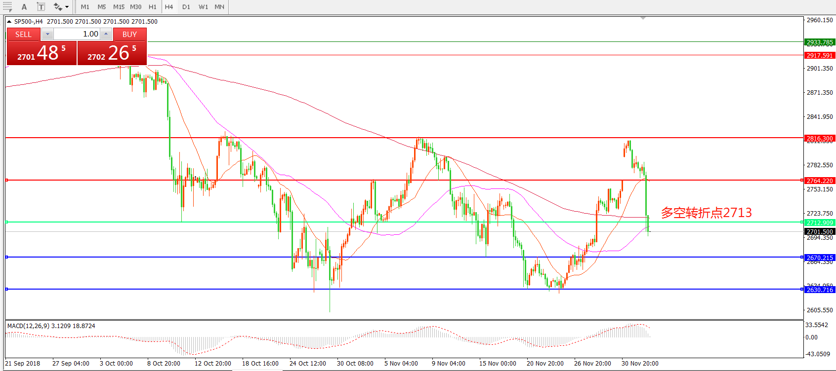 标普500SP500 4小时图: