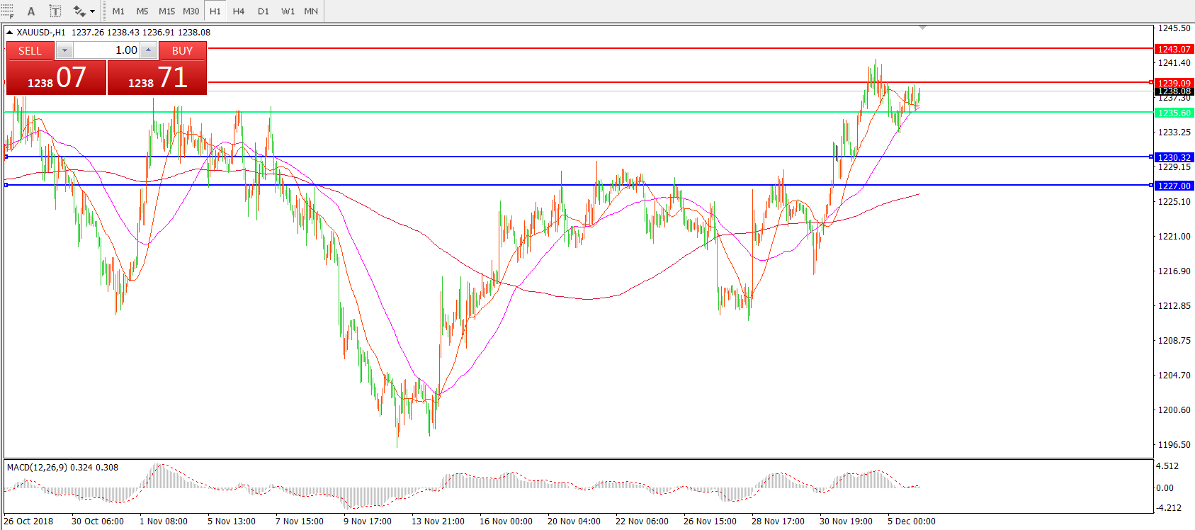 交易策略:在1235.00之上看涨,目标1239.00  1243.20