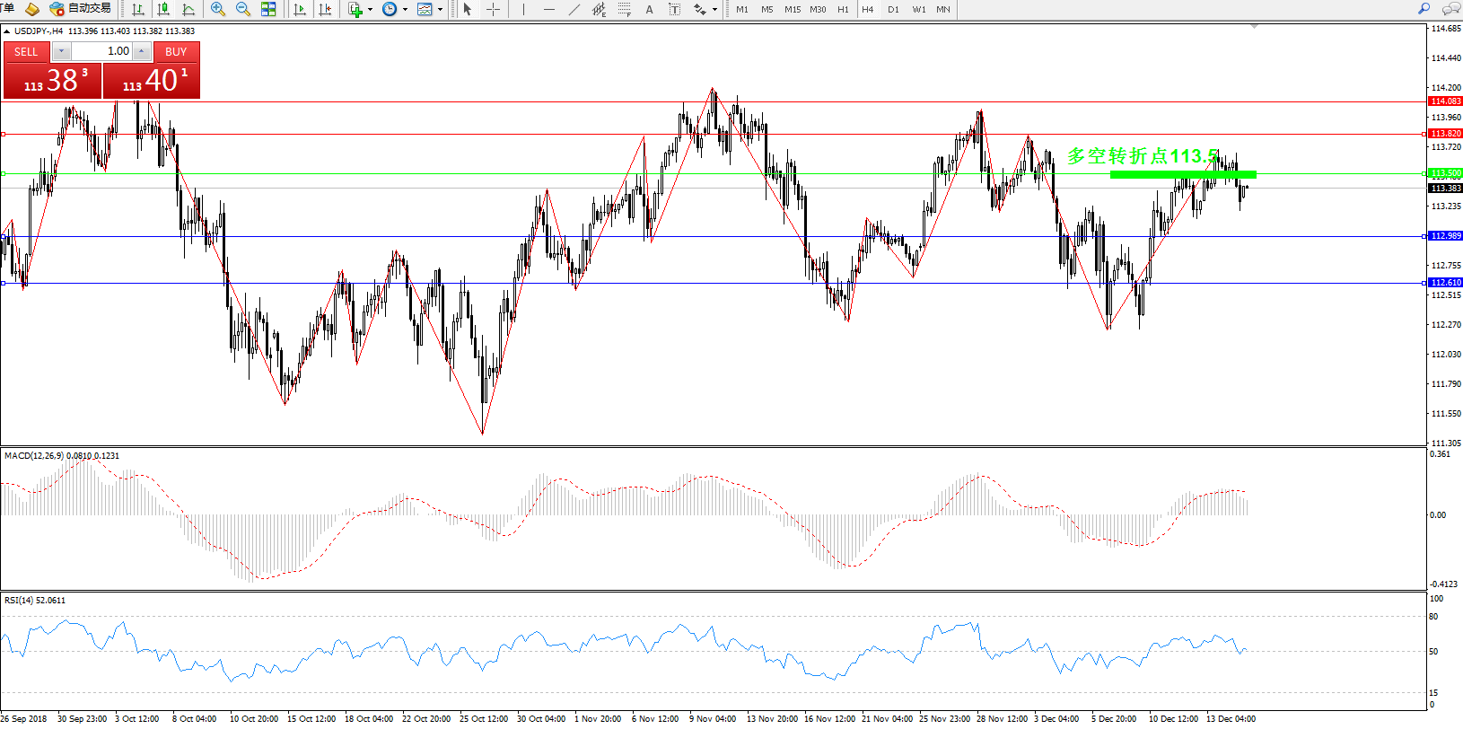交易策略:113.5上方看涨,目标113.820114.083