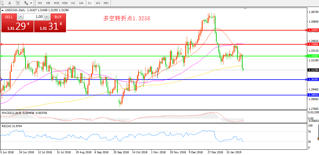交易策略:在1.3258之下看跌,目标1.3039 1.2893