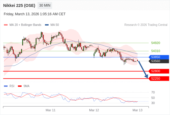 在 53850 之下,看跌,目标价位为 52800 ,然后为 52250 。