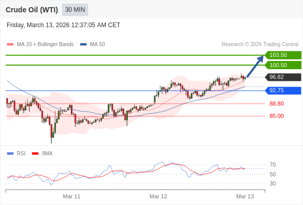 在 92.75 之上,看涨,目标价位为 100.50 ,然后为 103.50 。