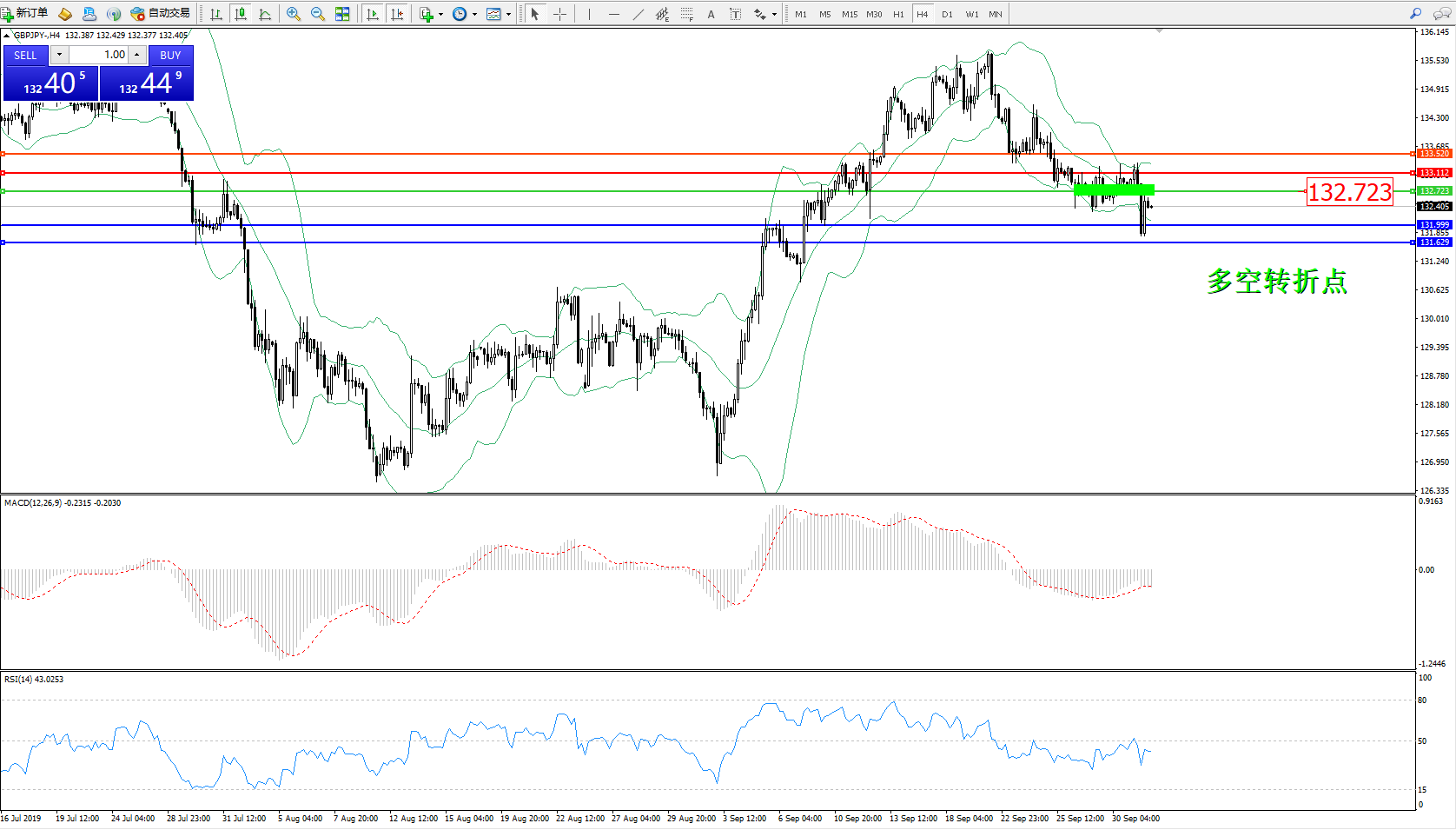 交易策略:132.723下方看跌,目标131.999131.629