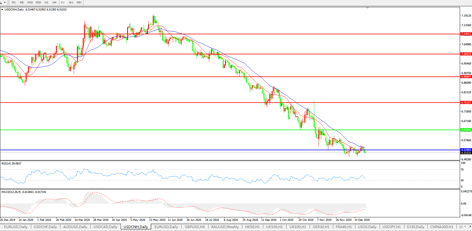 交易策略: 在6.6265之下,看跌,目标价位为6.5286,然后为6.3500。