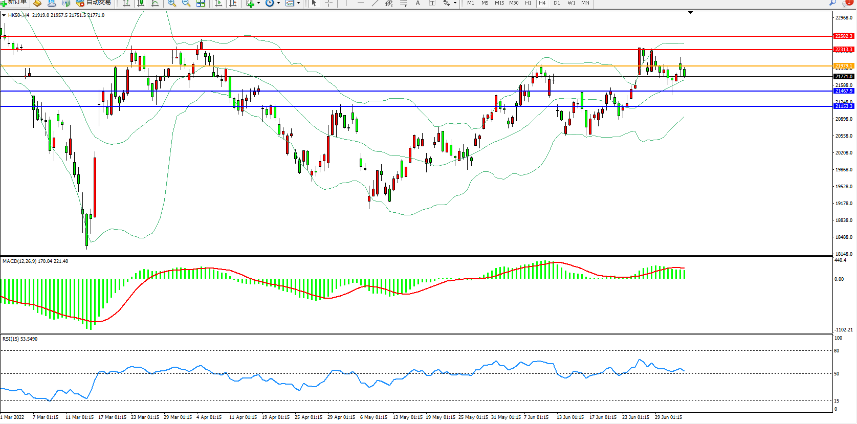 恒指HK50 4小时图