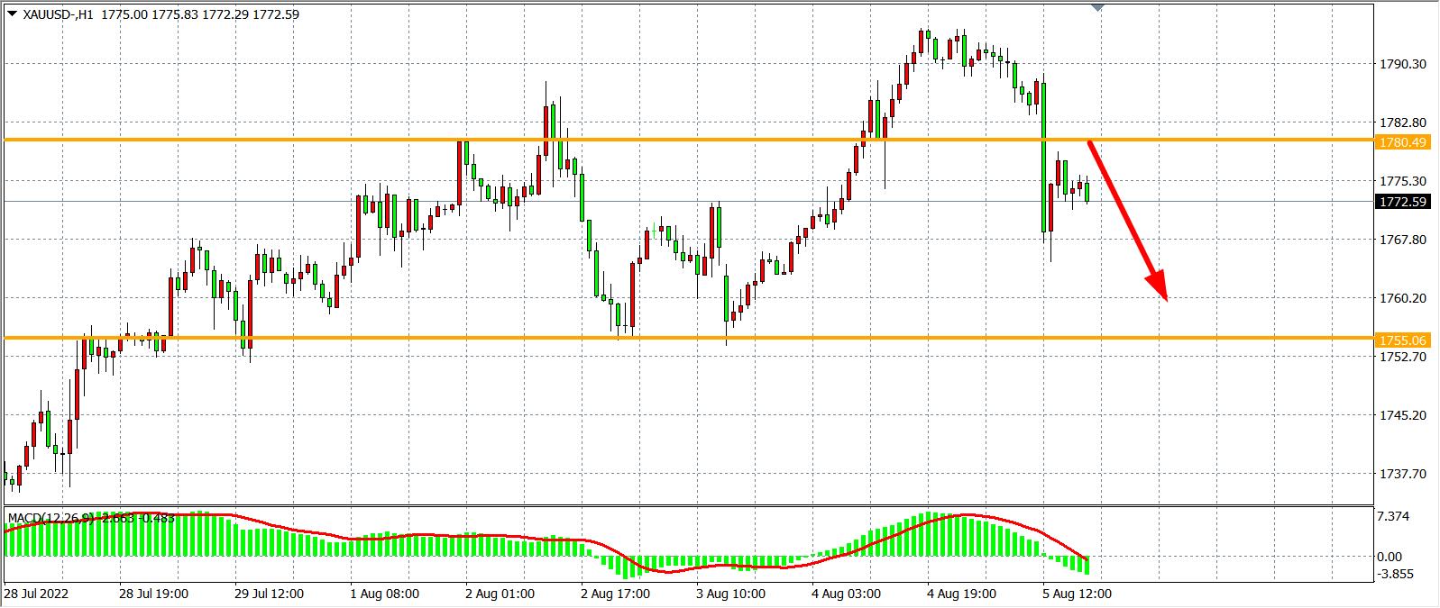 备选策略:在1780.00之下看跌,目标1755.00 1740.00