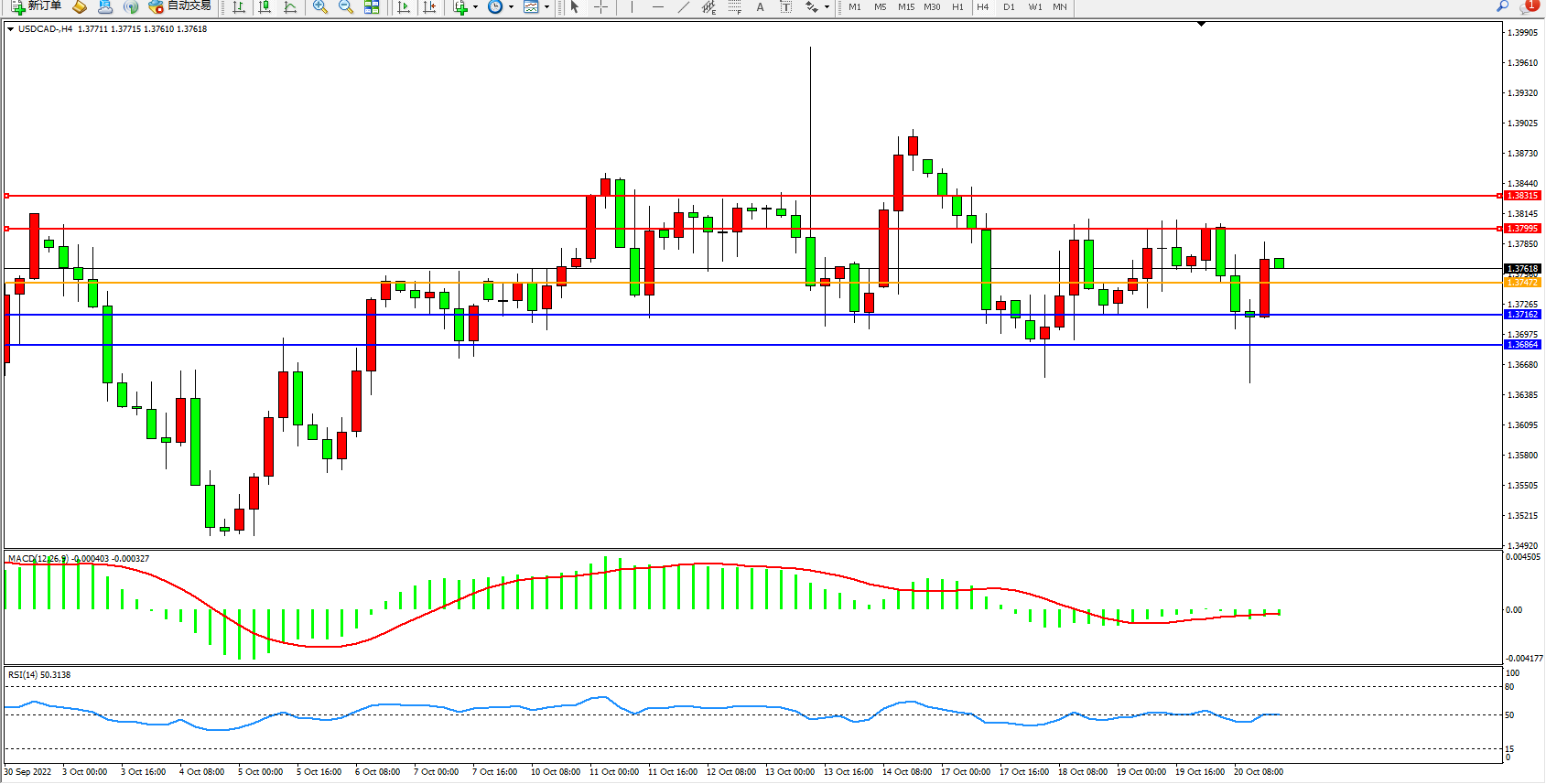 美元加元USDCAD——4小时K线图显示: