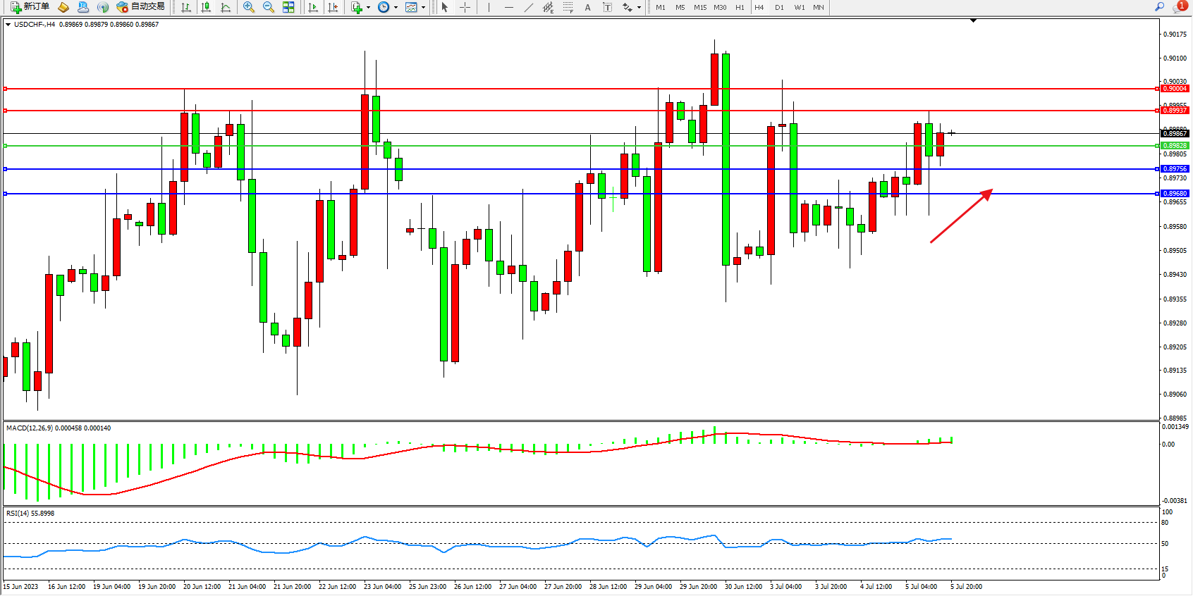 交易策略:0.89828上方看涨,目标0.89937  0.90004