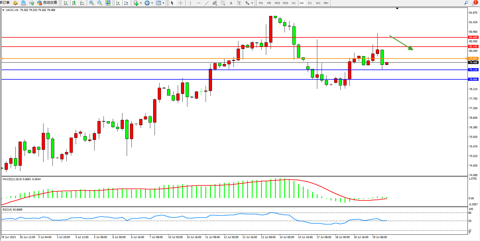 布油UKOil——4小时K线图显示: